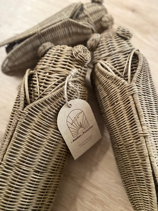 Nos cigales en rotin tissées à la main par un artisan vannier en France.